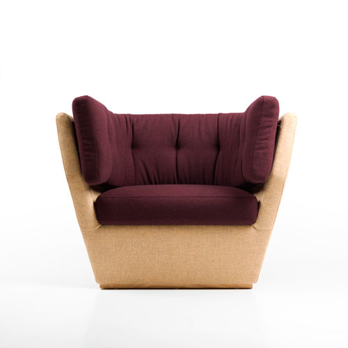 Hug - Design: Leif.designpark. Fotoliul Hug are un sezut generos si o forma jucausa, ce inspira o imbratisare. In contrast cu familiaritatea si primirea partii interioare, spatarul si carcasa sunt formale si sobre prcum costumul unui barbat. Este realizat din lemn de nuc sau stejar si imbracat in diverse materiale textile. Dimensiuni: W98xD77xH76 cm. Brand: De La EspadaIntro