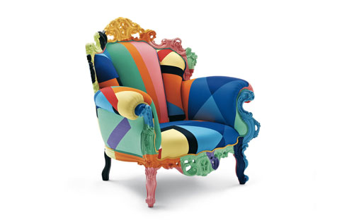Proust Geometrica - fotoliu Cappellini, cu rama de lemn vopsit si husa multicolora, caracterizata de un imprimeu geometric.Morphoza-atelier de interioare