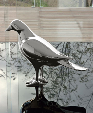 Cip Cip - pasare decor, din ceramica smaltuita Adriani e Rossi in nuante de platina, auriu si aur antichizat. L. 30 P. 12 H. 23 cm.