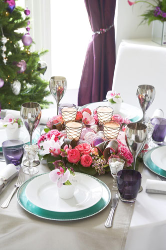 Realizeaza un aranjament floral simplu, pe care sa il amplasezi intr-un vas jos, punand accent pe contrastele de culori. Pentru acest aranjament, s-au folosit trandafiri, garoafe si orhidee, in nuante purpurii si de roz. Pentru a scoate in evidenta compozitia, poti folosi diferite obiecte decorative, cu tematica pascala.