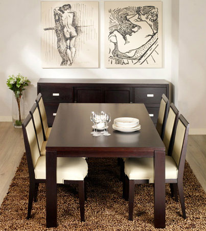 OAK SPIRIT - Lemnul masiv de stejar combinat cu modernul finisaj wenge, manerele argintiu satinat si look-ul masiv iti incanta privirea. Volumetria eleganta si atmosfera plina de seductie a acestui dining te va cuceri instantaneu. Pret: la cerere.