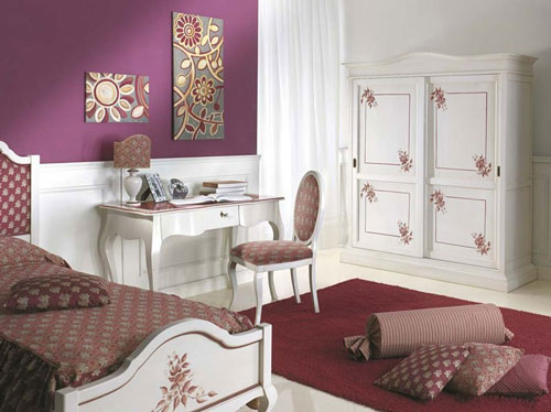 Dreams - Compozitie pentru dormitor, realizata din lemn masiv cu finisaje albite, compusa din: abajur Elena , 179 euro + TVA; birou cu top din sticla colorata, 1,037 euro+ Tva, Scaun birou, tapisat cu material textil , 285.00 euro + TVA, sifonier cu doua usi glisante decorat manual - 200 x 64 x 225 cm - 2,310 euro + TVA