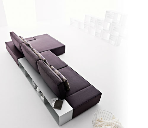 Aspera - canapea Mimo de tip coltar, cu design modern in linii drepte. Designul canapelei permite o expunere din toate unghiurile, zona de spate fiind prevazuta cu un spatiu de depozitare de tip mini biblioteca.