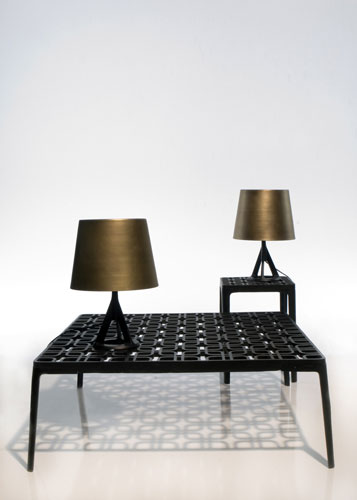 Link - Design: Tom Dixon. Tom Dixon afirma despre aceasta piesa ca "este atat de robusta si solida, incat ar putea fi folosita si pe post de gratar (barbeque)". Conceputa dintr-o singura bucata de aluminiu masiv, Link este satinata manual cu o pulbere neagra. Designul suprafetei de lucru creeaza o masa de umbre detaliate. Dimensiuni: H 40 x W39 x H40 cm sau H30 x W 80 x L 80 cm. Brand: Tom Dixon