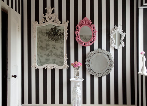 Amenajati-va locuinta in stil contemporan si decorati unul din pereti cu mai multe oglinzi, de forme si dimensiuni diferite, cu influente baroce. Pentru a surprinde cat mai bine atsmofera specifica, este de preferat ca peretele pe care sunt amplasate oglinzile, sa fie finisate cu un tapet in dungi sau cu imprimeuri funky. Anima incaperea si vopseste ramele oglinzilor in culori diferite si vesele.