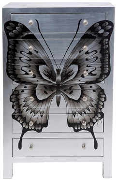 Cabinet Butterfly 6 Drawer - Cabinet argintiu, din lemn de plop, cu fluture pictat manual. Pret: la cerere.
