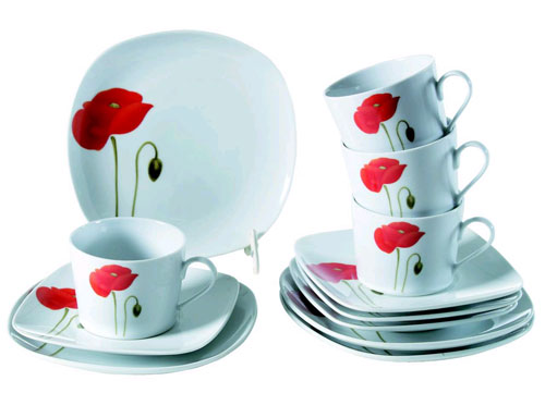 Set cafea maci, compus din: 4 farfurii desert, 4 cesti si 4 farfurioare. Pret: 54.99 lei.