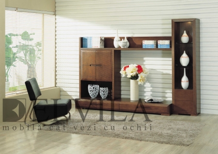 Biblioteca SPRUCE - Biblioteca din MDF furniruit, L272xA60xH198 cm. Sistem de perete. Pret: 2688 lei.