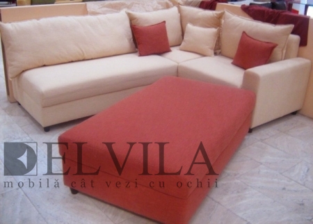 Coltar si taburet MADRID - Coltar din stofa, compus din: canapea 2 locuri fara brate, 122XA86XH86 cm, canapea 2 locuri colt cu 1 brat, L178xA86xH86 cm, taburet cu lada, L141xA82xH44 cm.