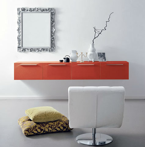 Break - corp suspendat Dall'Agnese, din MDF lacuit lucios, finisaj portocaliu aprins.