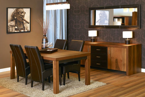 Dining Havana - Dining cu finisaj nuc, compus din vitrina cu 2 usi, bufet, comoda TV, masa extensibila, comoda cu 7 sertare. Pret: la cerere.
