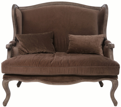 Villa Sofa Grandfather 2 Seater Velvet - Canapea maro, cu influente frantuzesti, tapisata cu catifea.