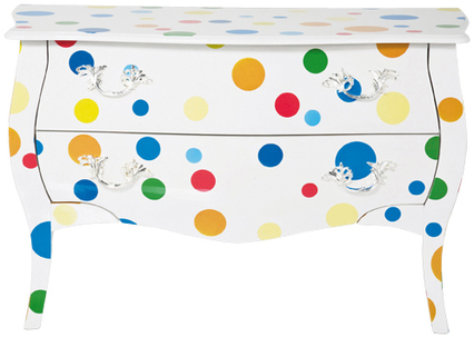Dresser Romantic Pointe Big - Comoda alba, cu buline colorate, din lemn de pin si top din MDF lacuit.