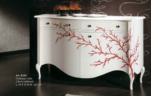 Le Classique - Comoda realizata din lemn masiv decorata manual, cu un design clasic reinterpretat foarte elegant si rafinat. Dimensiuni: 170 x 55 x 98 cm. Pret la cerere.