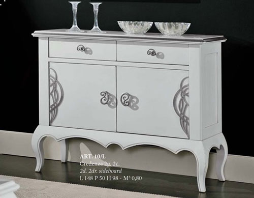 Carpe Diem - Comoda realizata din lemn masiv, decorata manual, cu insertii metalice. Dimensiuni: 148 x 50 x 98 cm.Pret la cerere.