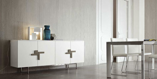 Credenza Slim - comoda Dall'Agnese cu manere atipice - functionale si decorative in acelasi timp, realizata din MDF lacuit, cu structura metalica.