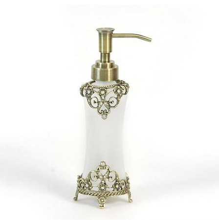 Dozator sapun lichid, stil clasic PV 11045 - Dozator din sticla si metal, cu detalii aurii. Pret: 80 lei.