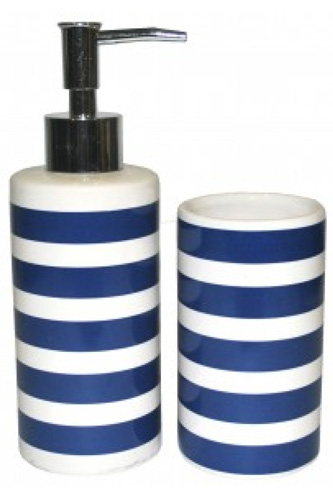 Set X2 piese baie model dungi bam boo - albastru. Set de baie compus din doua piese, cu dungi albastre. Pret: 39,99 lei.