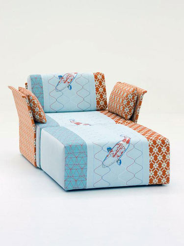 Sushi by Edward Van Vliet - Moroso Colectia Sushi este un concept de ambalaj, sofisticat, inspirat de staturile universale, gasite atat in natura cat si in arhitectura. Acest concept este, desi intr-o cu totul alta maniera, gasit in Karmacoma. O canapea cu o carcasa dura, sezutul si spatarul de un suport mar tare, si perne de suprafata foarte confortabile, fiecare strat distingandu-se printr-o tapiterie diferita. Pe langa cele de mai sus, in tot acest peisaj poate fi reperat un taburet in forma de gogoasa ce imbina atat modernul cat si folclorul. Insule mari, rotunde, capitonate cu un mosaic de tesaturi colorate. Toate tesaturile au fost create pentru aceasta colectie. Foarte frumos si atragator sunt broderiile cu crapi. Ele apar pe divese obiecte facand legatura dintre acestea. Dimensiuni: Ø94 cm H 45 cm, Ø140 cm H 45 cm , Ø50. Pret la cerere prin casaitalia Cluj Napoca