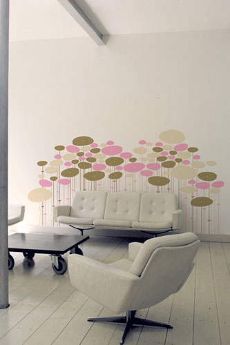 Jungle Pink - Design: Ich & Kar. Sticker de perete din vynil ce infatiseaza un lan de flori in forme si culori usor neobisnuite. Dimensiuni: 150 x 100 cm. Brand: Domestic. Pret: 360 lei cu TVA