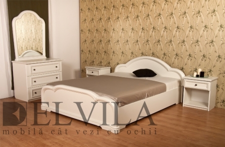 Mobila dormitor Cristina - Mobila dormitor din PAL melaminat, alb, compusa din: pat, L175xA213xH57/90 cm, 1000 lei. 2 noptiere, L52xA38xH57 cm, 102 lei/buc., comoda: L94xA53xH80 cm, 457 lei, rama oglinda, L80xA6xH105 cm, 160 lei, dulap 4 usi, L220xA70xH210 cm, 1.842 lei.