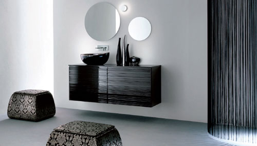 Momento - Compozitie pentru baie, cu fronturi lacuite lucios si striatii decorative. Oglinzile decorative adauga un plus de eleganta compozitiei. 144 x 52 x 200 cm. Pret: 3,596 euro+ TVA/ compozitie