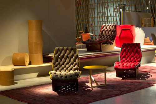 Biknit - design Patricia Urquiola, disponibil in varianta scaun si chaise longue, din lana impletita, disponibil cu un cadru din lemn sau din metal. Pret: la cerere.