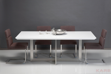 Table Madison White Glossy 200x100cm - Masa din otel inoxidabil, cu topul din MDF lacuit. Pret: 3.868 lei.
