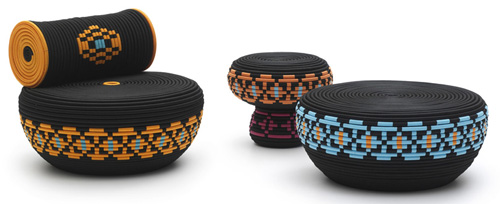 Superheroes - fotoliu jos si taburete, o colectie Cappellini, decorata cu un model geometrico-etnic.