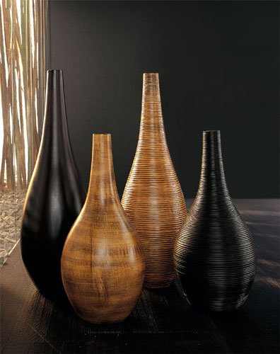 Sonia si Francesco - Vaza din ceramica, lucioasa sau dungata, maro sau crem. Dimensiuni: Sonia H100cm , Francesco H70 cm. Pret: intre 180 si 260 euro fara T.V.A (in functie de marime si finisaj).