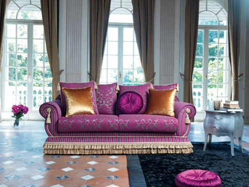 Prince - Canapea realizata pe cadru din lemn masiv, cu structura poliuretanica si dacron si tapiserie din material textil sau piele, complet detasabila. Disponibila si in varianta extensibila cu saltea de 8 cm grosime. Colectia propune trei modele de ciucuri pentru decorarea pieselor. Dimensiuni (foto): 165 x 90 x 90 cm. Pret de la 1,240 euro + TVA/ piesa.