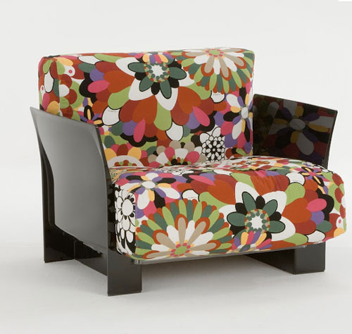 Pop - brandul Kartell renumit pentru piese de mobilier din masa plastica a lansat o linie de produse constand in fotolii si canapele. Cum era si de asteptat, structura este de plastic, insa sezutul si spatarul sunt definite de perne imbracate in huse vesele, cu imprimeu floral.