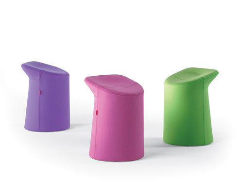 Lilla - Design: Patrick Norguet, 2006. O invitatie de a sta jos redusa la cea mai simpla forma. O forma inspirata de o buturuga. Lilla este un taburet ergonomic, imbracat in material textil colorat si umplutura de spuma rezistenta pe structura din otel tubular.