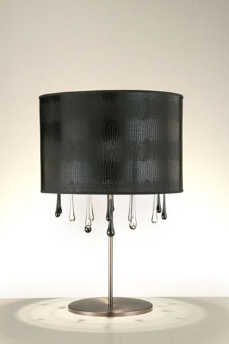 781 LT D BC - Veioza eleganta cu abajur din material rafinat si modern, cu aspect final al picaturii de cristal. Veioza cu un bec. Dimensiuni: diam.45-h60 cm. Finisaje: Chrom, Nikel negru, sticla de Murano. Pret: 347 euro+TVA.