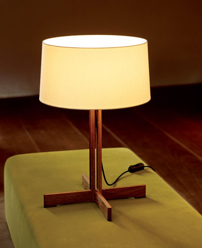 FAD - Design: Miguel Mila. Lampa FAD a fost special conceputa pentru primul sediu de birouri al Asociatiei de Arte Decorative din Barcelona. Este sustinuta de un picior despartit la mijloc printr-un spatiu gol si o baza in forma de cruce, ambele realizate din lemn masiv wenge Sapeli. Brand: Santa & Cole. Dimensiuni: inaltime 59 x baza 40 x diametru abajur 40 cm.