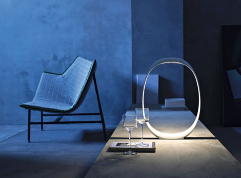Anisha - intocmai ca o rama cu forma fluida, o elipsa neregulata, o sculptura modernista, lampa in design Foscarini da consistenta spatiului gol. Anisha contureaza interiorul gol al ramei si il inunda cu lumina ei, producand o senzatie magica. Forma sa de plastic isi autogenereaza reflexii multiple si dezvaluie esenta ei sculptural.