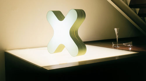 X Club M - lampa de masa realizata din lemn si acril satinat, LZF design. Diagonala de 75 cm, (2 x 14 w).