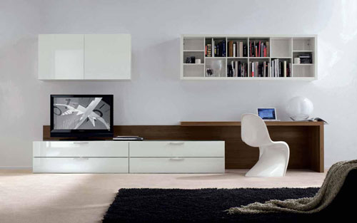 All Day - Colectie modulara, ideala pentru crearea de compozitii persoanalizate, cu fronturi din MDF lacuit lucios si structura din MDF cu finisaje natur. Dimensiuni compozitie: 403,2 x 65 x 206,2 cm. Pret de la 3.249 euro + TVA/ in functie de finisaje