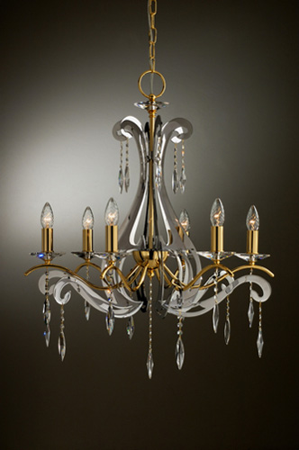 Fashion Crystal - Candelabru cu 6 becuri, cu structura suflata cu aur de 24k si cristale Swarovski. Diametru 68 - H 73 cm. Pret de la 2,066 euro + TVA