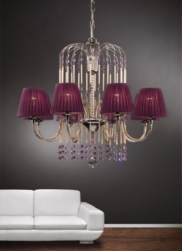 EuroLuce - Candelabru din colectia Euroluce, cu un design clasic, elegant; cu 8 abajururi din material textil si cristale aplicate. Diam. 75 x 50 cm. Pret la cerere.