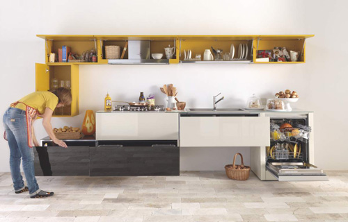 Comp 272 - organizare este cuvantul care descrie cel mai bine aceasta compozitie moderna de bucatarie, Lago design intr-o combinatie fresh de culoare: ocru si antracit.