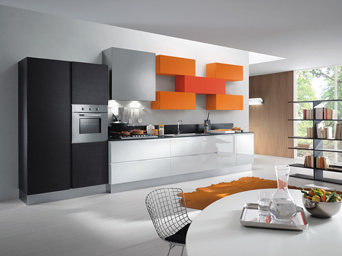 Composit - Bucatarie moderna, in nuante de portocaliu. Pret la cerere prin casaitalia Cluj Napoca