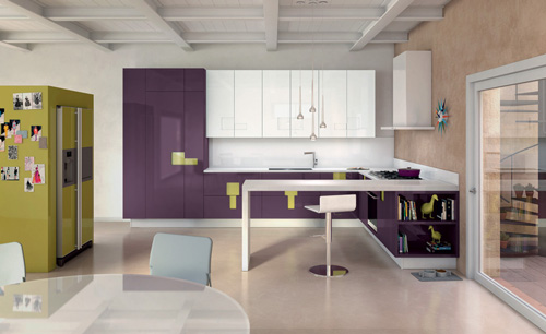 Ernesto Meda - Bucatarie cu fronturi mov/albe. Pret la cerere prin casaitalia Cluj Napoca