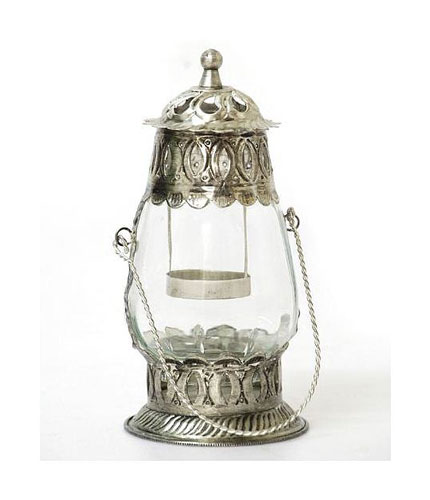 Suport lumanare felinar cu capac - Gama de cadouri de la Exotique prezinta decoratiuni cu stil pentru oameni pretentiosi. Acestea pot fi amintiri de neuitat atat pentru cei dragi, dar si pentru clientii firmei tale. Sticla si metal. Pret: 60 lei.
