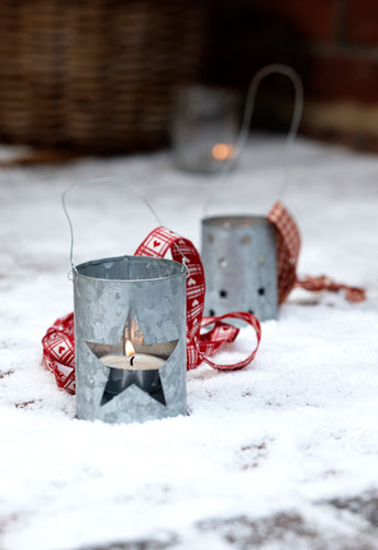 Pentru urmatoarea propunere pe care ti-o facem, ai nevoie de cutii metalice de conserve si de o bormasina sau un ciocan si un cui. Realizeaza suporturi pentru lumanari, perfecte pentru a crea o lumina ambientala, atat pentru interior, cat si pentru exterior. Curata bine cutiile, umple-le cu apa si amplaseaza-l in congelator, pe timpul noptii (acest lucru ajuta la mentinerea formei cutiei, pe parcursul urmatorilor pasi). Dupa ce apa a inghetat, scoate conservele si gaureste-le cu un cui si un ciocan, pentru a putea prinde sarma, ce va tine locul manerului. Cu un creion, deseneaza modelul pe care il doresti, urmand apoi sa dai gauri pe conturul acestuia. Odata ce apa s-a topit, vopseste noile suporturi de lumanari in culoarea dorita si nu uita sa amplasezi in interior lumanarile.