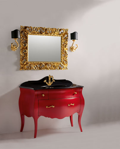 Mobilier de baie Foor, cu oglinda, rosu cu auriu, pret la cerere.