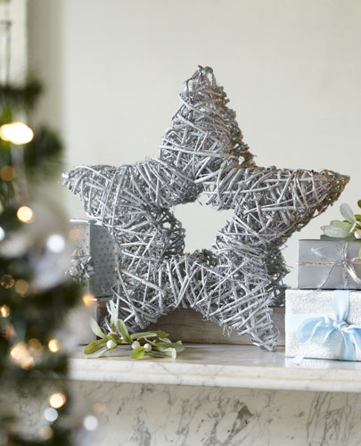 Daca esti adepta stilului shabby chic, rustic sau scandinav, atunci urmatoarea ghirlanda pe care ti-o propunem este alegerea cea mai potrivita. Primul lucru pe care trebuie sa il faci este sa creezi forma pe care doresti sa o obtii din sarma (poti realiza o stea, o inima, un bradut). Dupa aceea, prinde de acest cadru cat mai multe crengi, dupa care vopseste-le cu un spray alb, argintiu sau auriu. Vei obtine, astfel, o decoratiune simpla, dar chic si de efect.