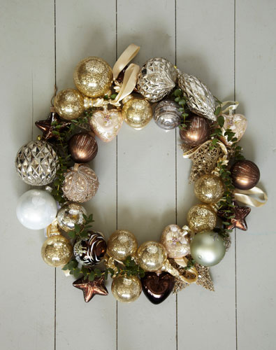 Accesoriile pentru bradul de Craciun sunt o sursa inepuizabila pentru decorarea locuintei, in aceasta perioada. Astfel, globurile pot fi folosite si ca aranjament central pentru masa de Revelion, dar si pentru a crea o ghirlanda. De un cadru metalic, prinde mai multe globuri, in culorile preferate si ataseaza-i ghirlandei o funda mare.