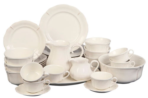 Josephine - Set vesela 34 piese, din ceramica glazurata, alb patinat. Pret: 687 lei.