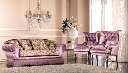 Canapea extensibila din colectia Otello, in combinatie de crem si mov, din material textil, pentru 2 persoane. Pret la cerere.